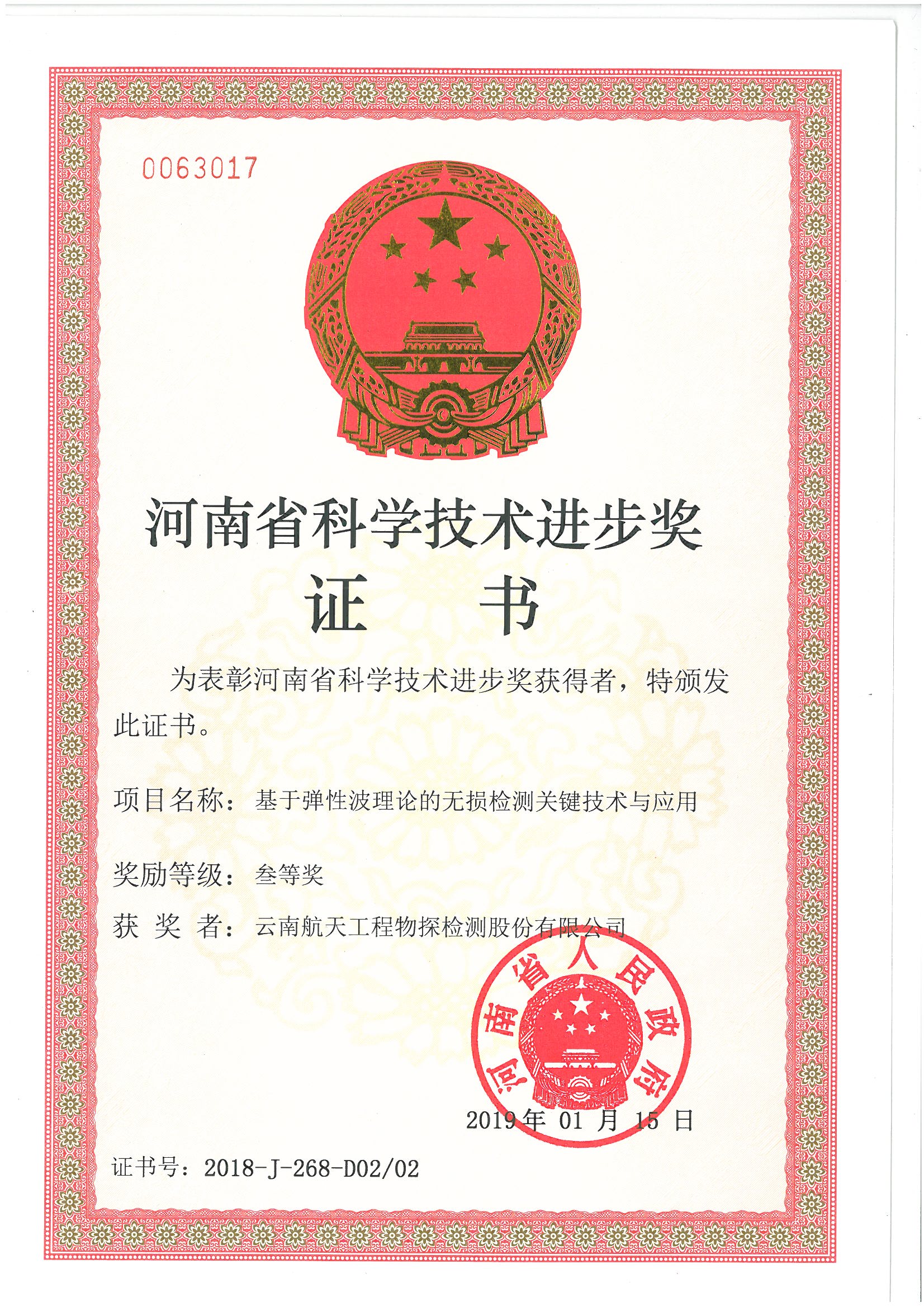 河南省科技進步一等獎