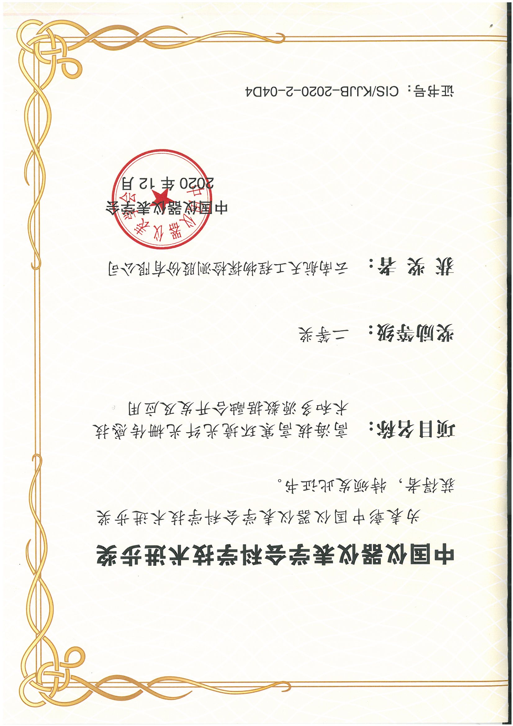 中國儀器儀表協會科技進步...